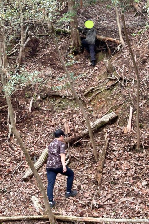 途中、植樹広場にあった地面がフカフカしてるトランポリン感あるスポットや丸太が倒れたところでアスレチック的にわいわい遊んでました。