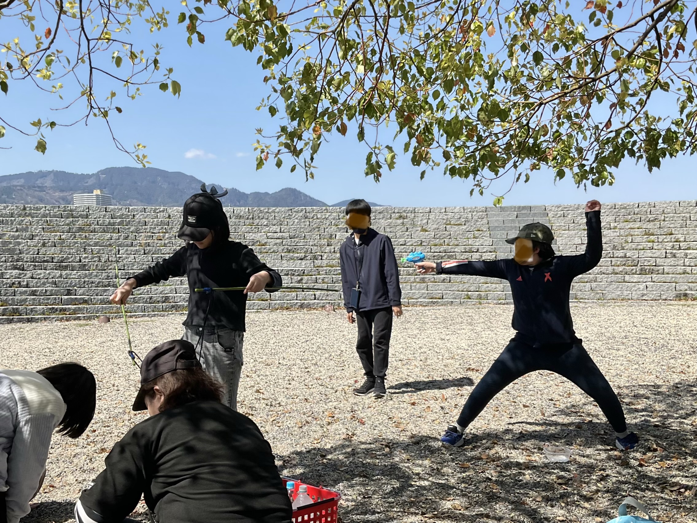 長等公園にも足を伸ばし、男子はチャンバラごっこで元気いっぱい、女子はターザンロープに挑戦してキャッキャと笑い合い!