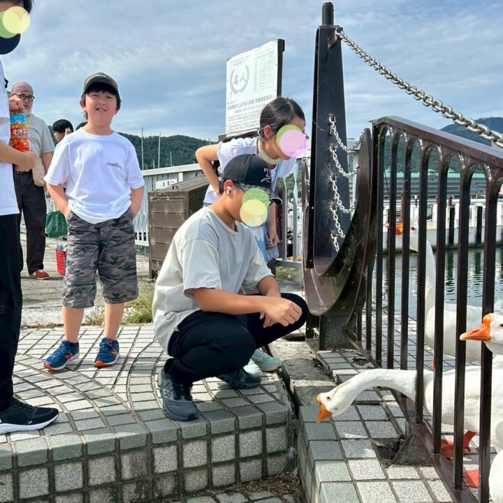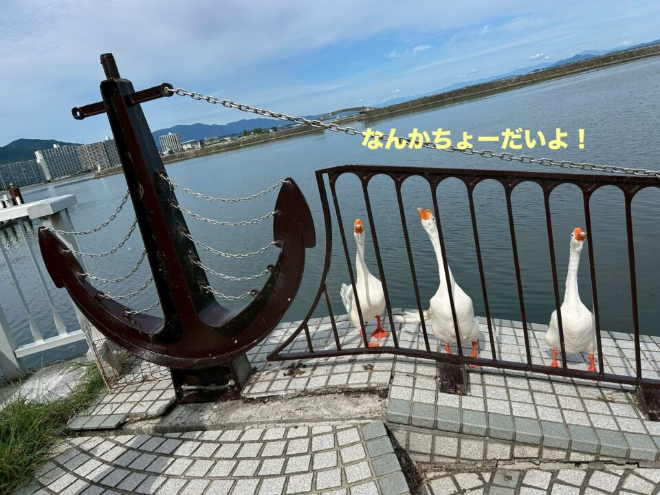 ガチョウは、20年ほど前から琵琶湖汽船の方々により、マスコットとして放し飼いされているそうです。