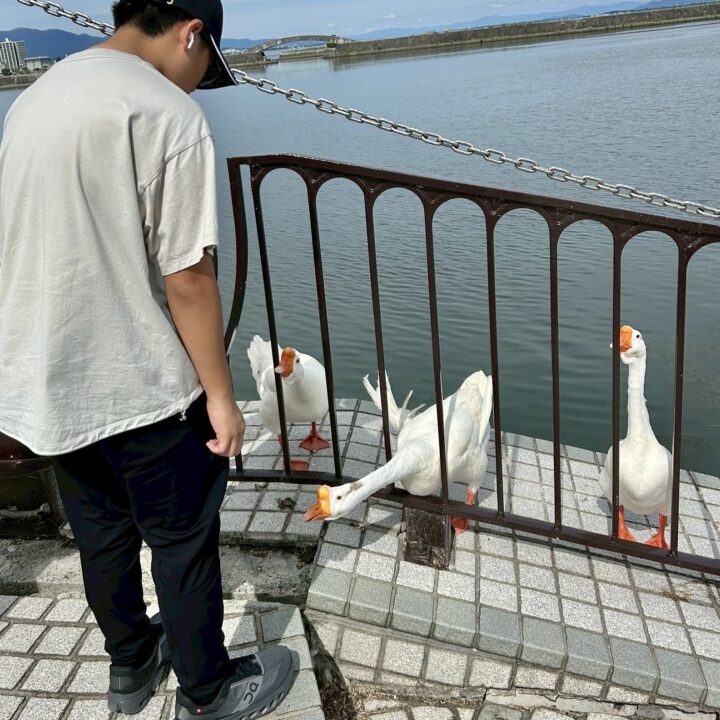 道中ではトライアンフの子ども達にはお馴染みのガチョウ3羽に遭遇🪿🪿🪿