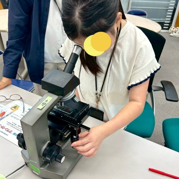 顕微鏡を覗き込む子どもたちの真剣な表情、