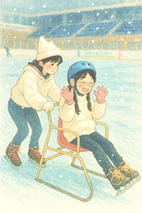 「転ばへんかな…」と不安そうにしながらも勇気を出してリンクへ。