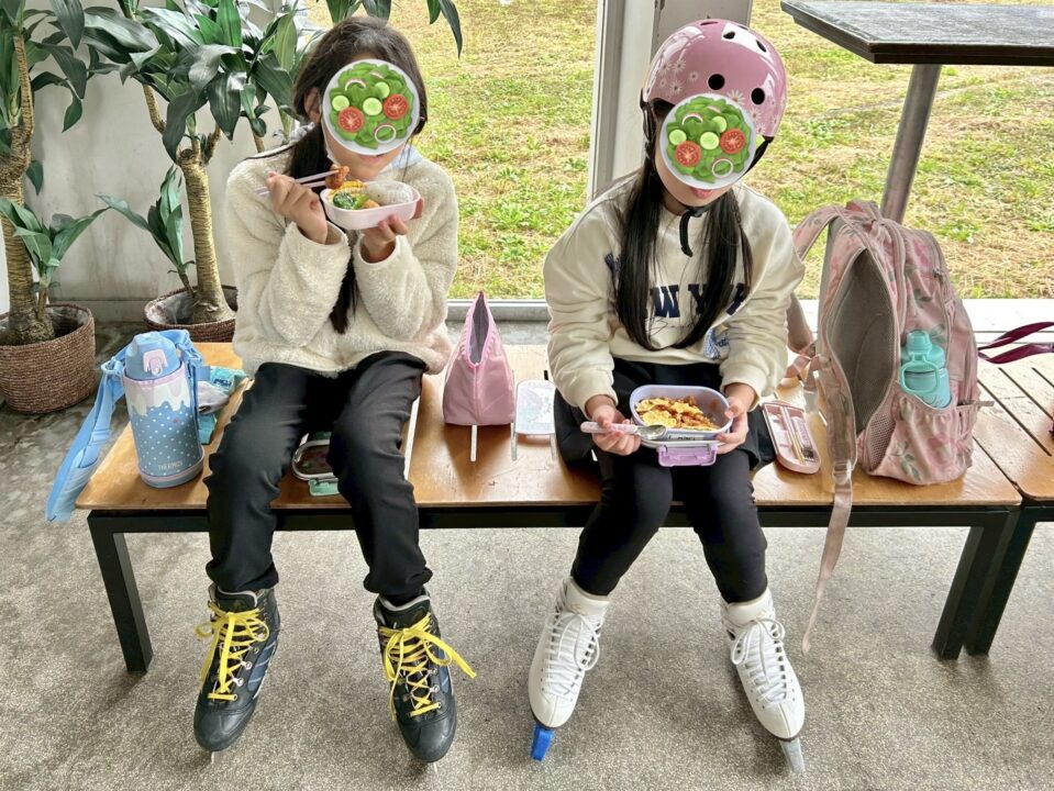 リンクサイドでお弁当タイム