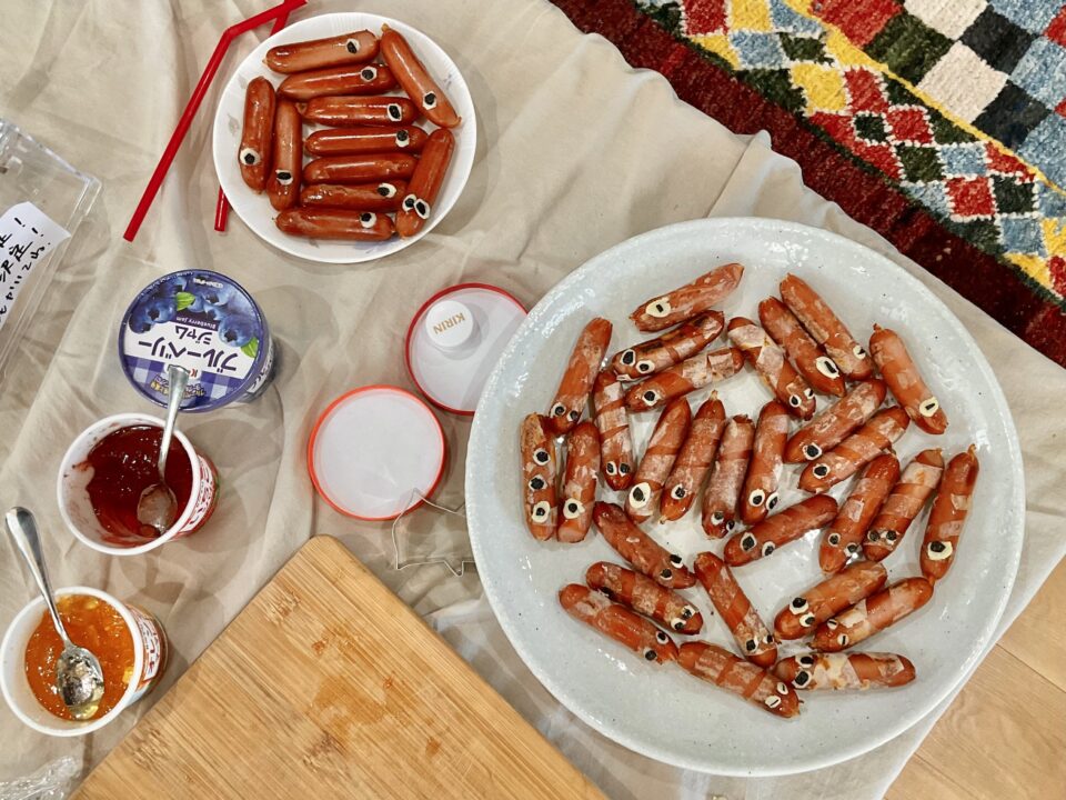 小さい子たちも「なにやってるの!?」と興味津々で、ウインナーやサンドづくりに参加。