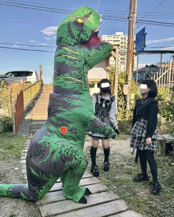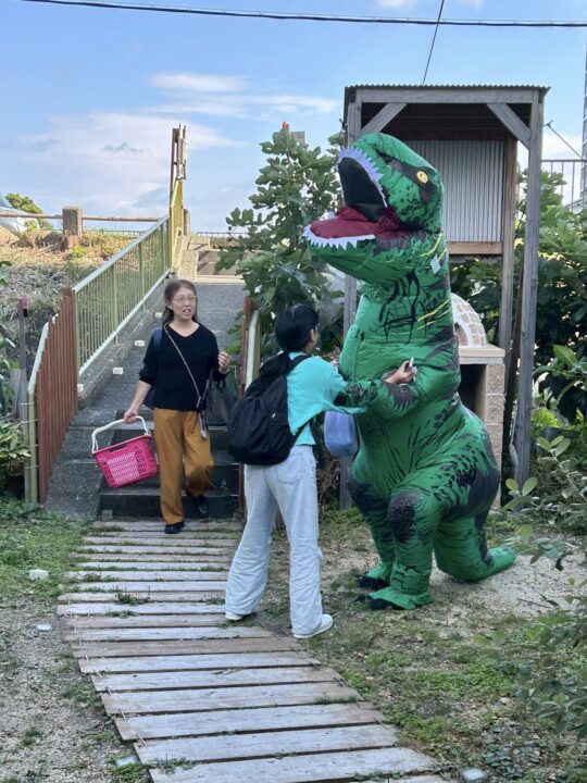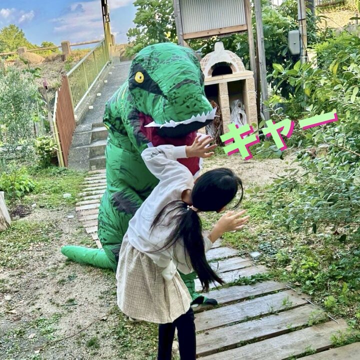 子ども恐竜や親恐竜、そしてスタッフ恐竜も登場して、笑いが止まりません🤣