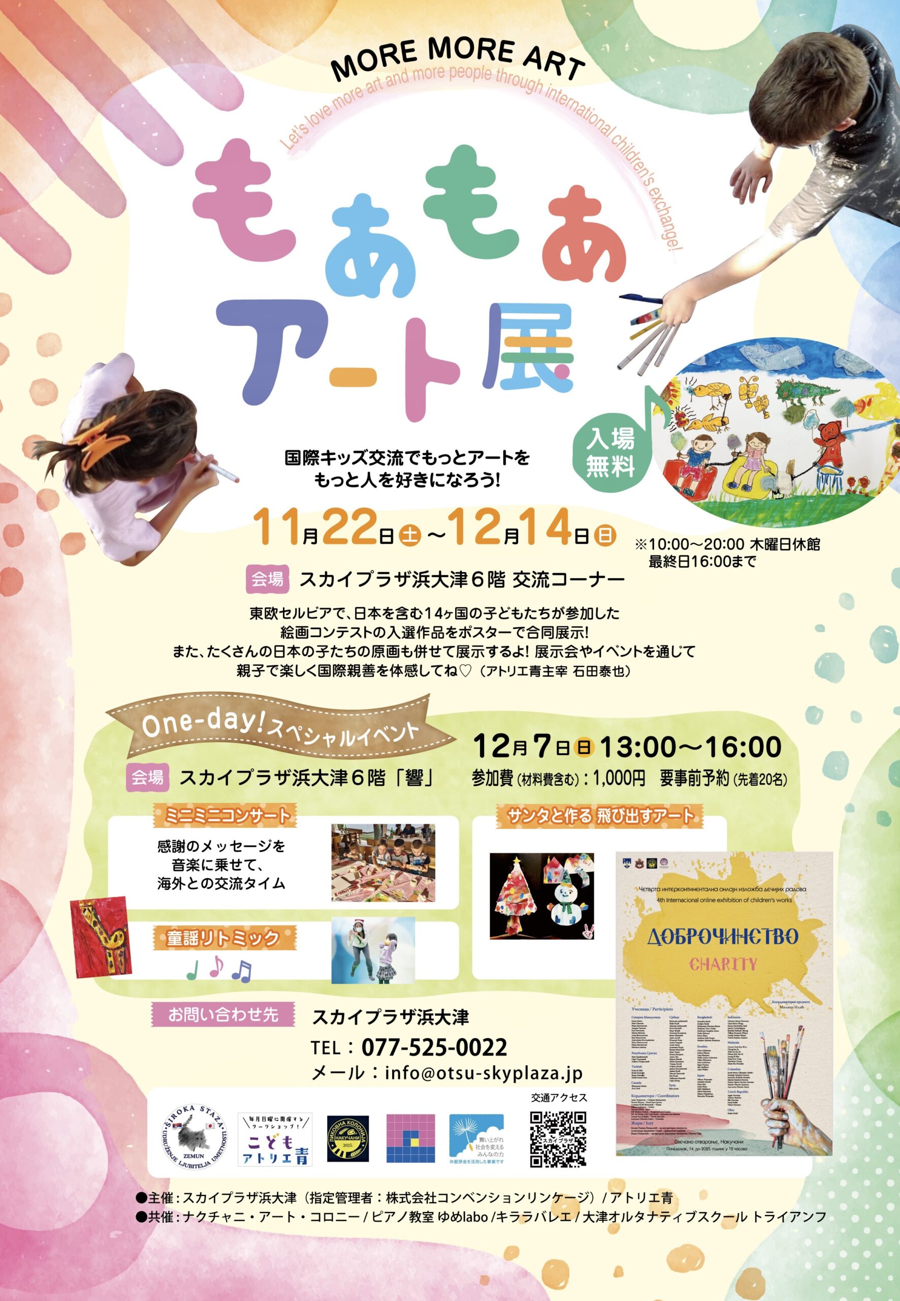 大津オルタナティブスクール トライアンフの子どもたちも参加している国際アート交流企画「もあもあアート展」が、現在スカイプラザ浜大津で開催中です。