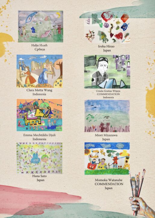 世界中の子どもたちの作品が一堂に集まる、色彩豊かな国際交流展示となっています。
