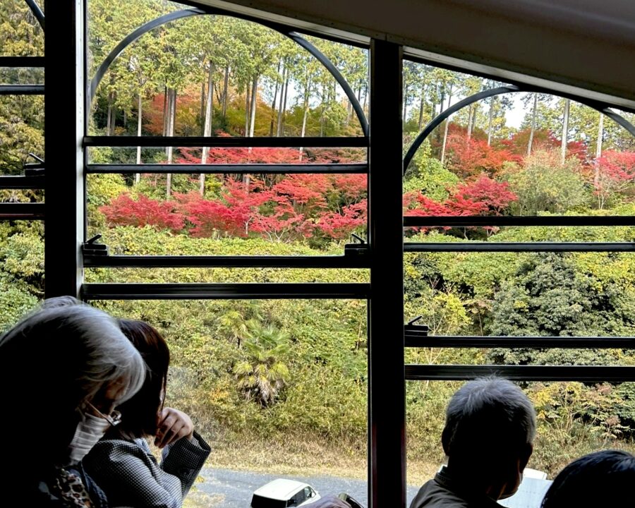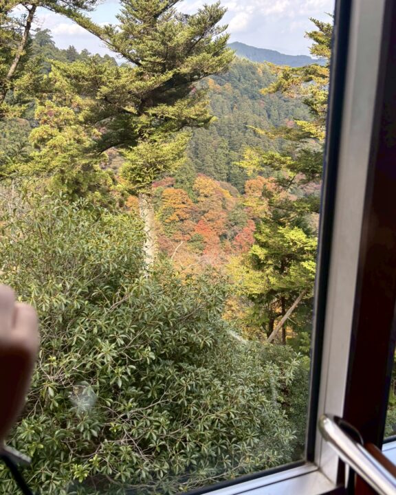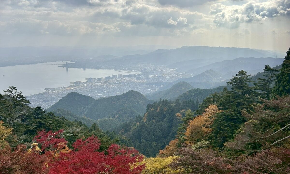 山の紅葉は平地より一足早く、車窓からは鮮やかな色づきと、眼下に広がるびわ湖の絶景を一望できました 🙌