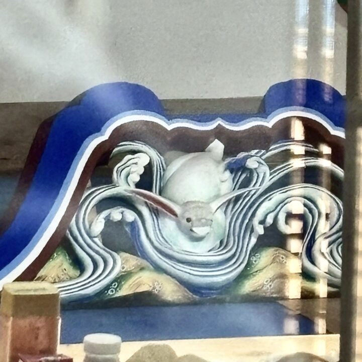 でもその分、普段は見られない屋根の構造や、塗り立ての彫り物の鮮やかな色を見ることができて、特別な体験になりました。