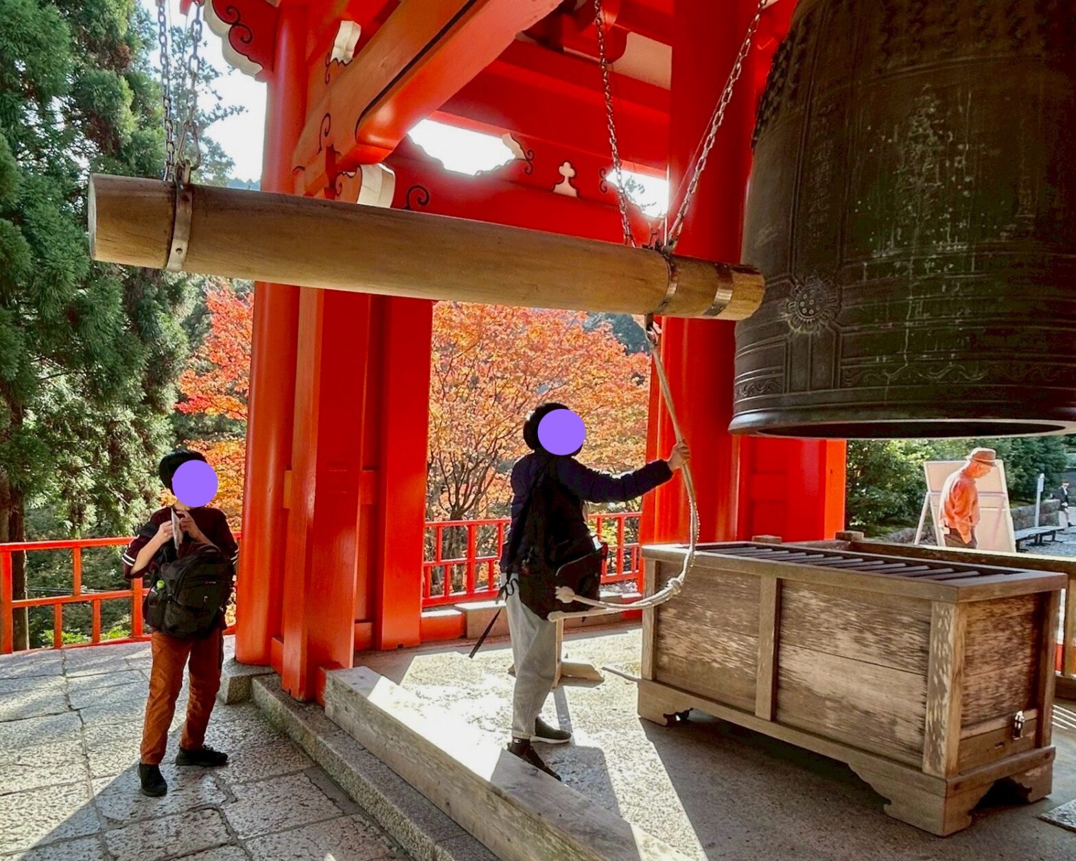 途中で大きな鐘を撞き、「先に帰った組まで音届いてるかな?」と笑い合う姿がとても微笑ましかったです。