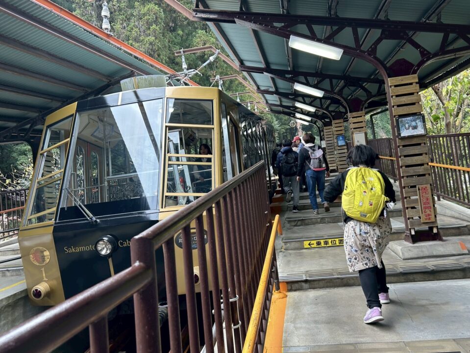 ふもとから延暦寺までは、全長2025メートルの日本一長い「比叡山坂本ケーブル」に乗って向かいました。