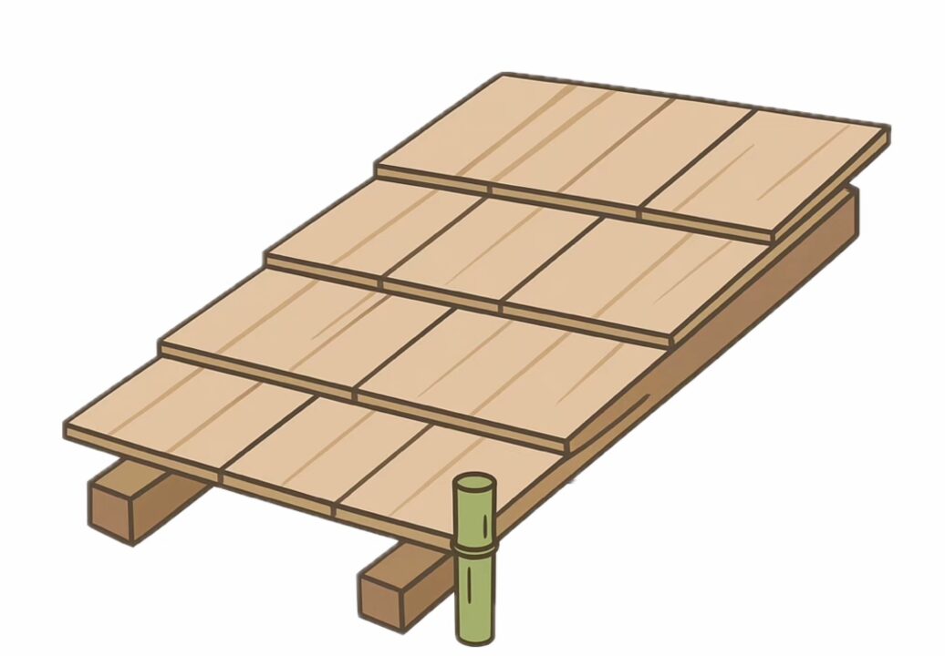 薄い木の板(杮=こけら)を何重にも重ね、金属の釘を使わず、竹釘など自然素材で留める 昔ながらの技法だそうです。