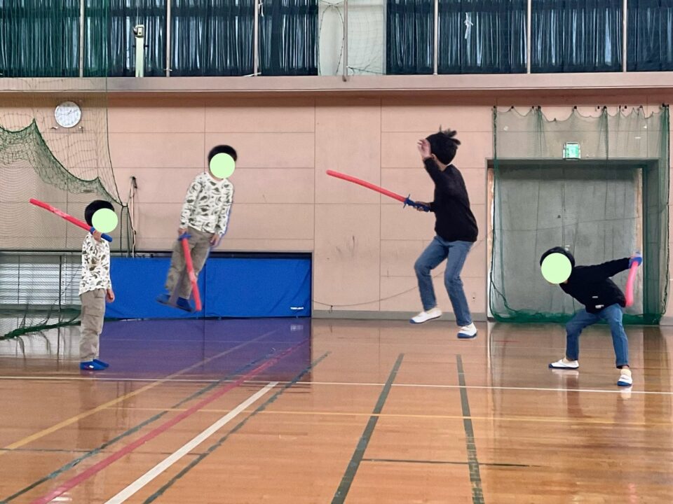 今日はなんと体育館を貸し切り!広〜い空間を、子どもたちが思いっきり使って遊びます。