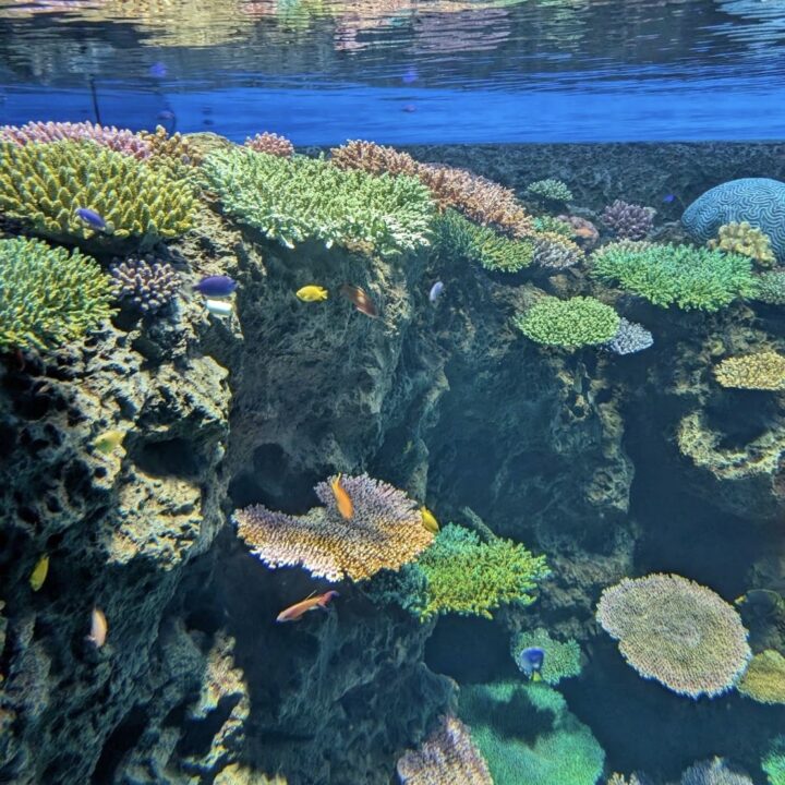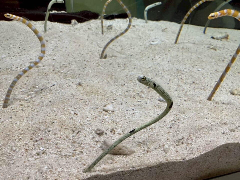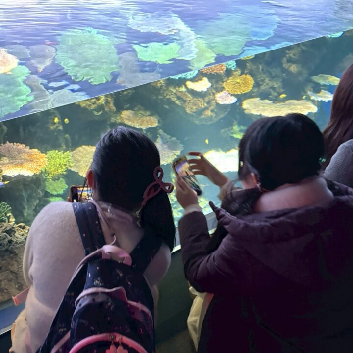 日本の海に生息する魚たちや、幻想的に光るクラゲなど、たくさんの生きものに目を輝かせていました。