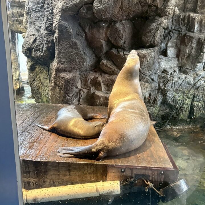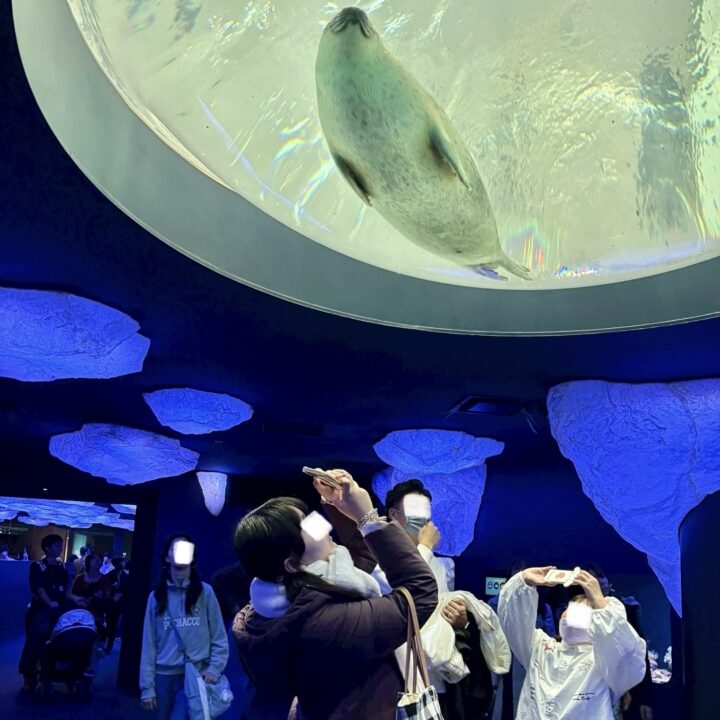海遊館の目玉である大迫力のジンベエザメをはじめ、愛らしいフォルムのアザラシ