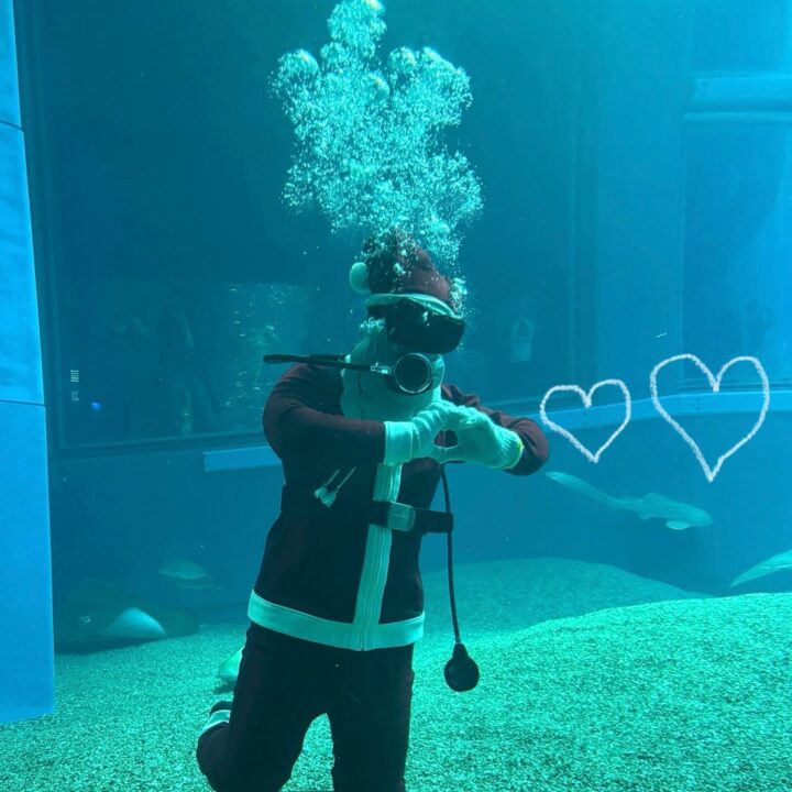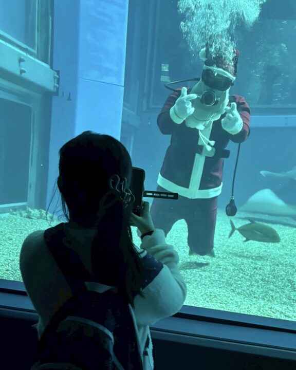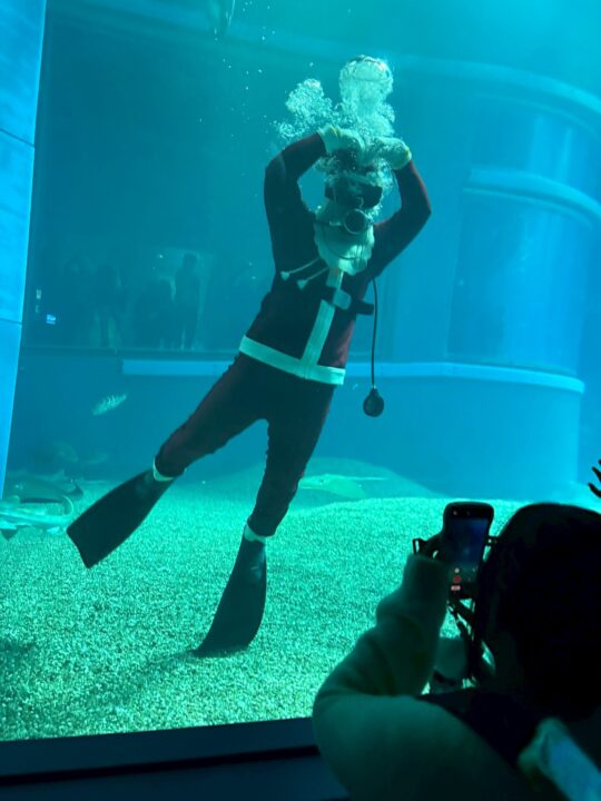 さらに太平洋水槽では、運良くサンタクロースの衣装を着た「サンタダイバー」と遭遇!