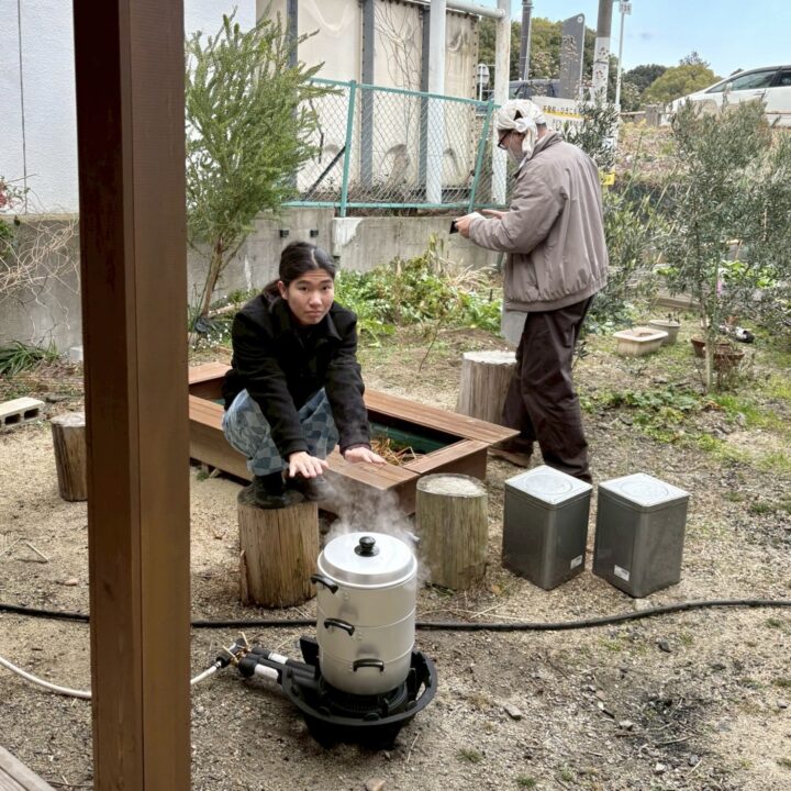この日は、もち米を蒸すところからスタート。