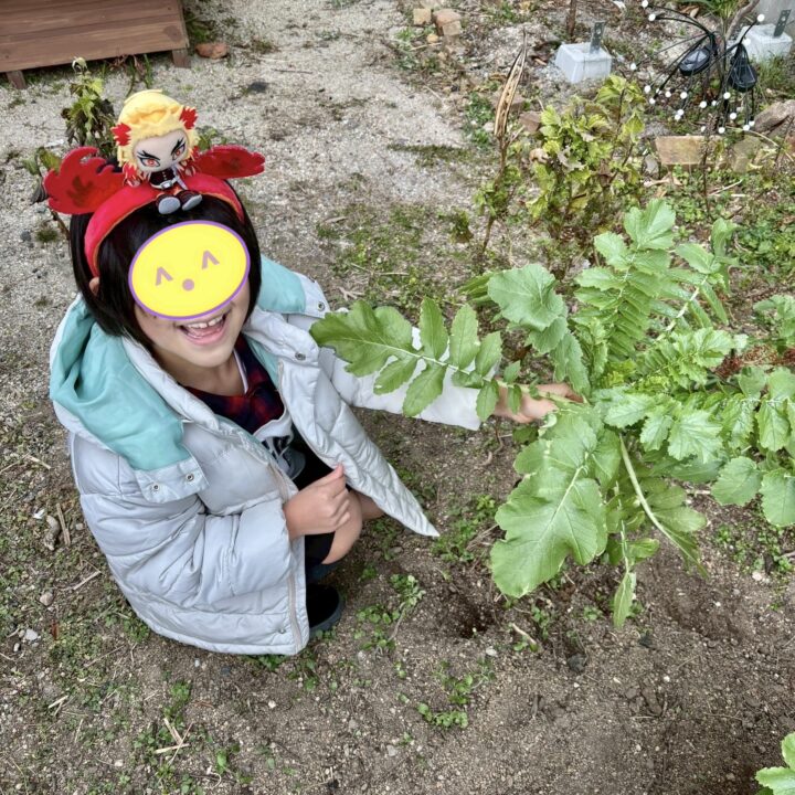 大人には、庭で育った大根を使った大根おろしと、大根の葉の炒め物が大好評❣️