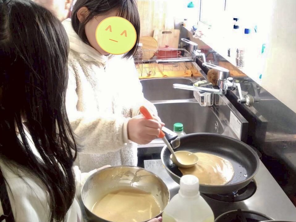 フライパンに生地を流し込むと、じわっと広がる甘い香り。
