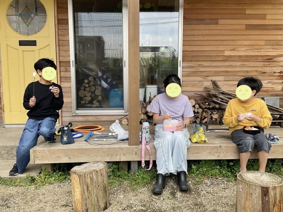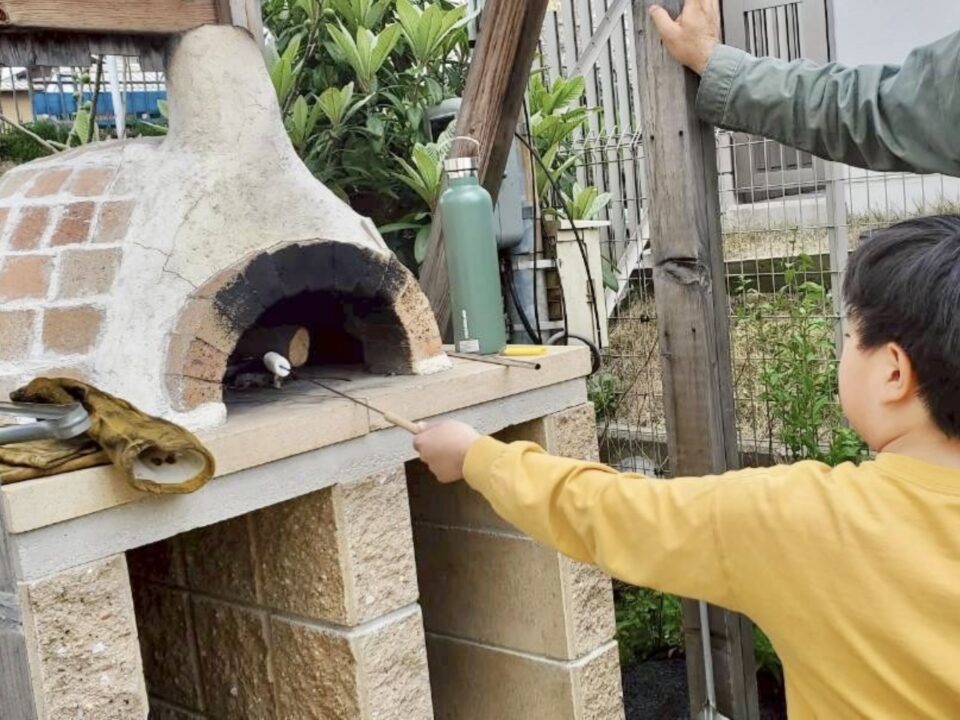 食後には、ピザ窯の火を囲みながらマシュマロを炙ります。
