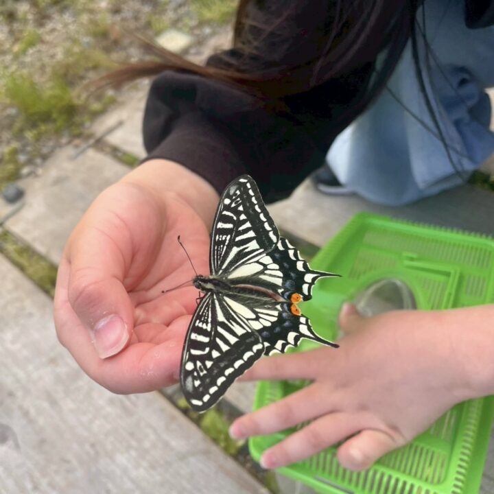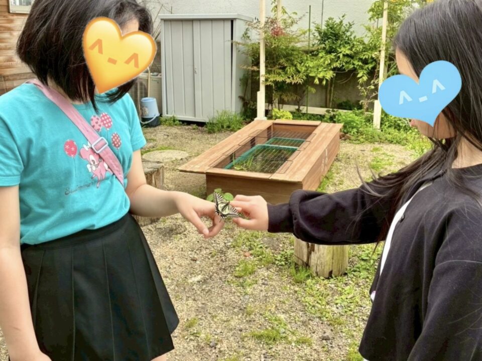 最後はそっと手をひらいて、庭へと帰してあげる。